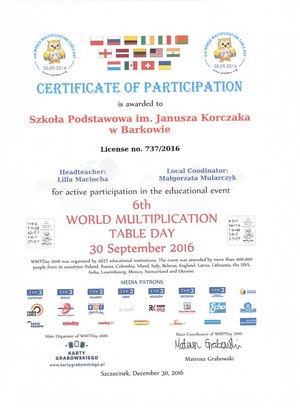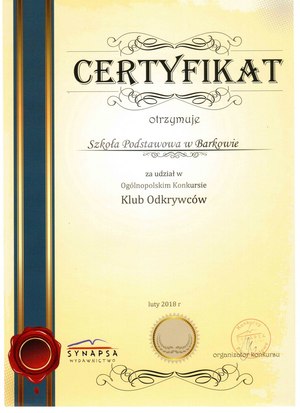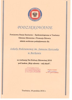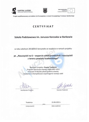 Ukryte dziedzictwo dyplom Szkoła Podstawowa im. Janusza Korczaka w Barkowie