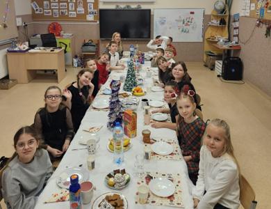 Zanim jednak wybrzmiała część artystyczna, w szkole odbyły się wigilie klasowe. Uczniowie zasiedli przy wspólnych stołach, dzielili się życzeniami, śpiewali kolędy i spędzili miły, ciepły czas w gronie koleżanek, kolegów oraz wychowawców. To był moment budujący relacje, bliskość i poczucie wspólnoty.