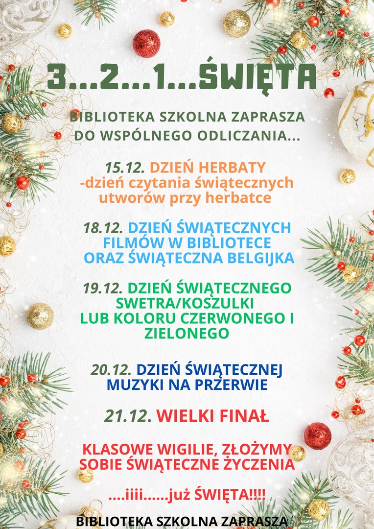 Biblioteka Szkolna dziekuje za wspólne odliczanie i życzy samych pozytywnych dni, książek pełnych magii i wiele uśmiechu.