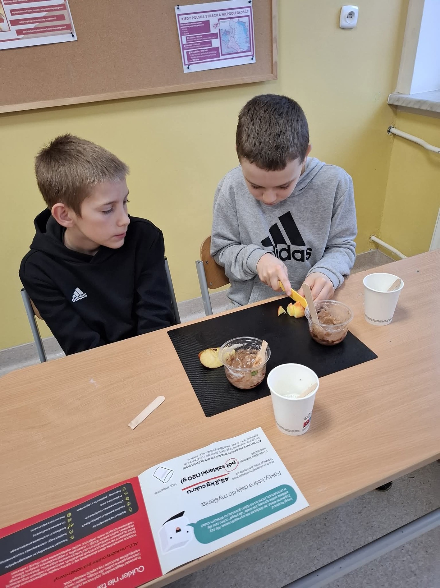 🍓 Jednym z najciekawszych elementów warsztatów była część praktyczna, podczas której dzieci samodzielnie przygotowywały zdrowy deser bez dodatku cukru.