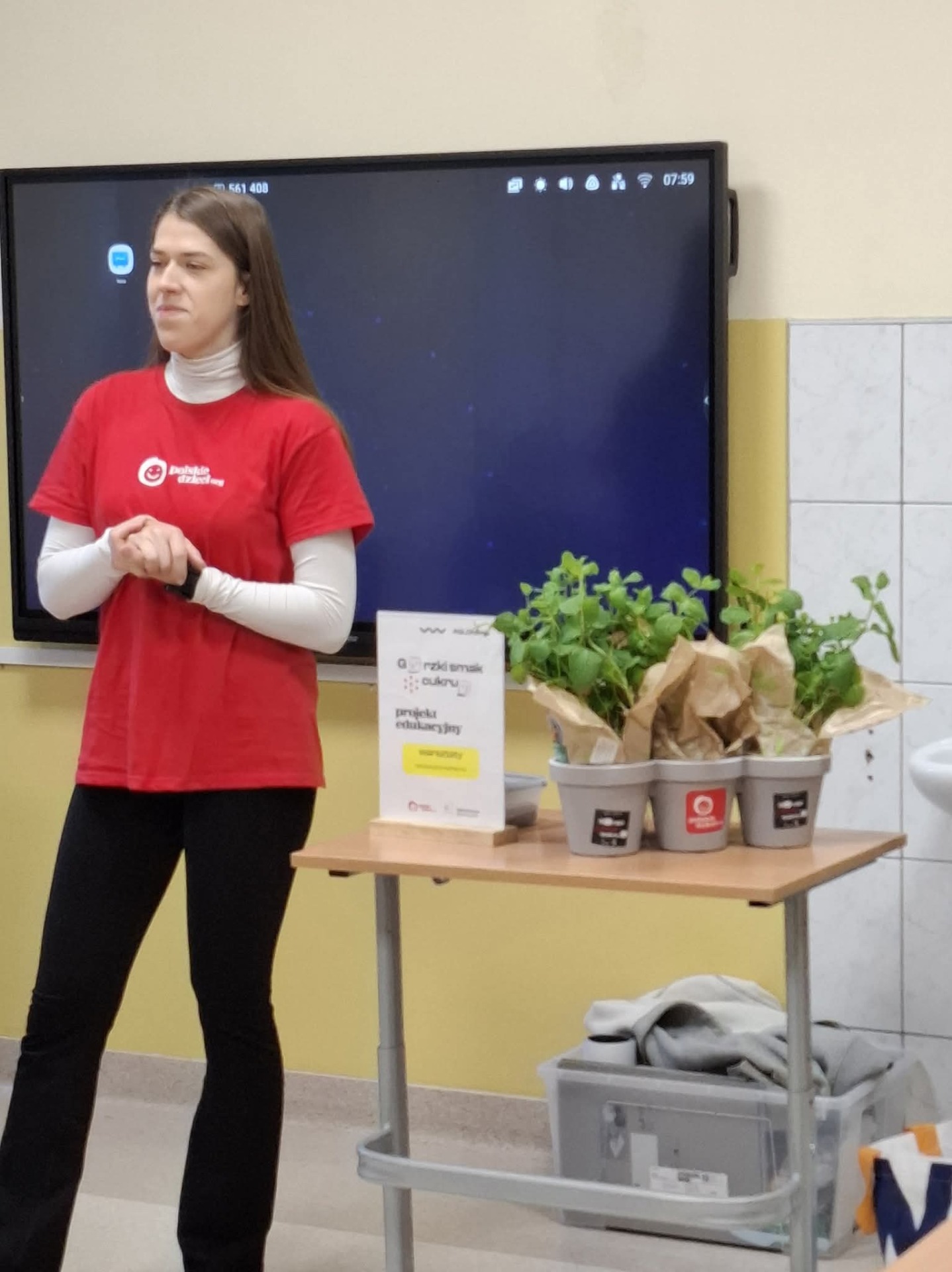 Zajęcia miały na celu uświadomić młodym ludziom, jak duży wpływ ma nadmiar cukru na nasze zdrowie oraz jak często ukrywa się on w produktach, które na pierwszy rzut oka wydają się zdrowe. Uczennice i uczniowie z dużym zainteresowaniem odkrywali, ile cukru kryje się w popularnych napojach czy przekąskach, oraz uczyli się, jak czytać etykiety i dokonywać świadomych wyborów.